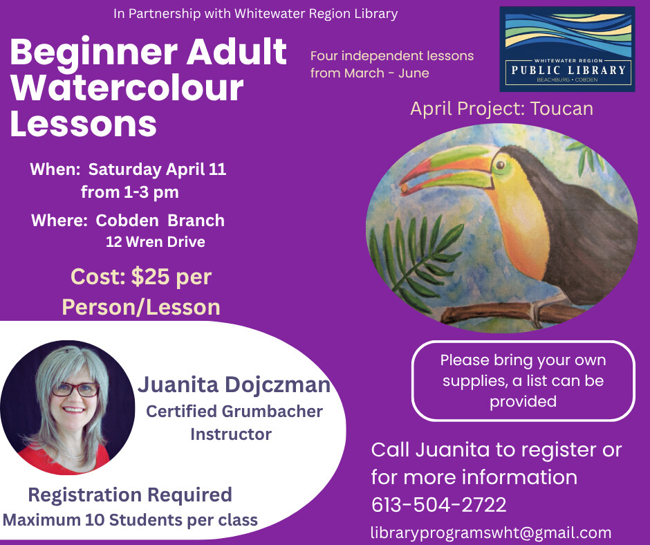 Join us on Tuesdays in Beachburg and Thursdays in Cobden between 4:00-5:00 pm for the After School Club. The activities are designed for children 4-10 years old accompanied by an adult. For more information please contact Summer at libraryprogramswht@gmail.com.